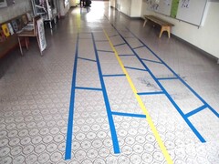 6年総合の「まちとともに」の活動で、現在、自分たちに取り組めそうな地域活性に向けた取組を考えているところです。その活動の一環として、まずは学校の中をアートで飾り、盛り上げようとなり、学校のあちこちに子どもたち自作のアートを飾り付けています。ペンギンの足跡、あみだくじ…これからも増えていく予定。ご来校の際に目で楽しんでみてください。